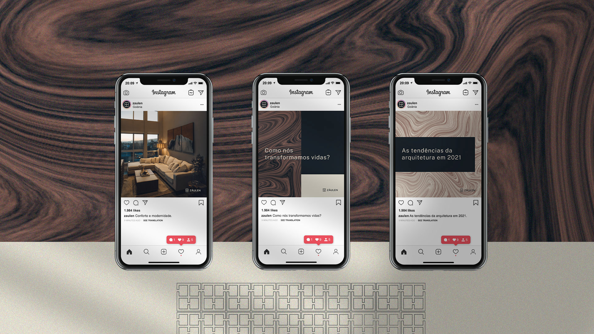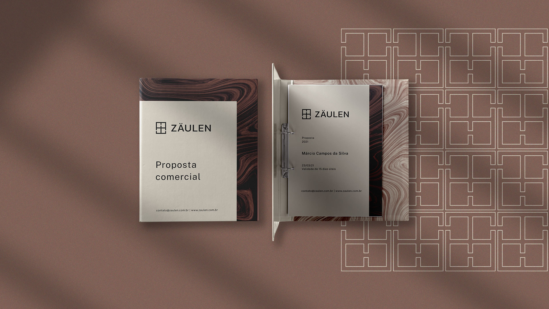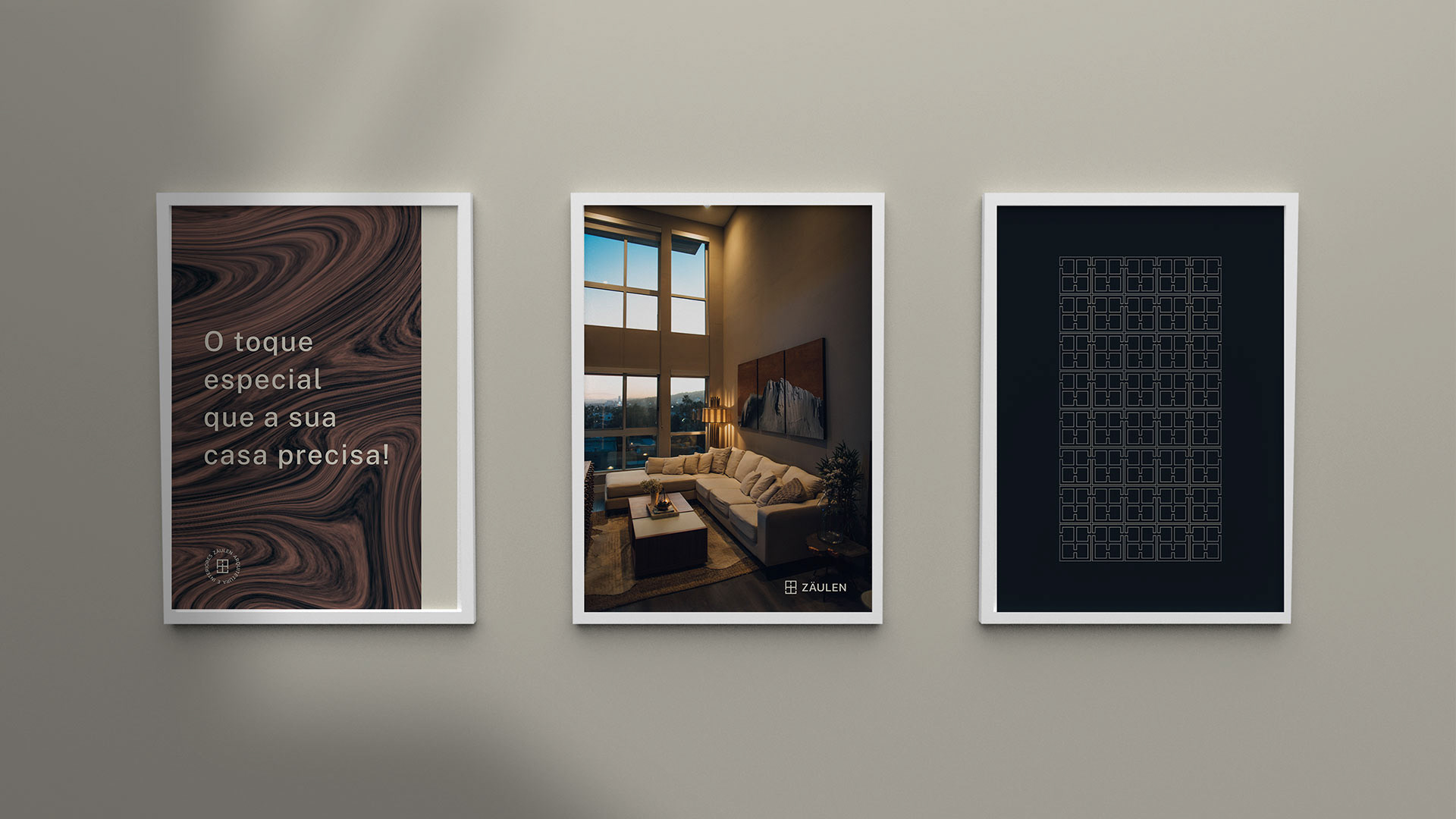 A identidade visual da Zäulen é baseada nos 7 princípios. Ela é moderna e sofisticada, e traz o conceito de alto padrão, fazendo com que o público tenha confiança na marca. Buscamos referência na área da arquitetura, fugindo de formas muito usadas como, casas, chaves e prédios.